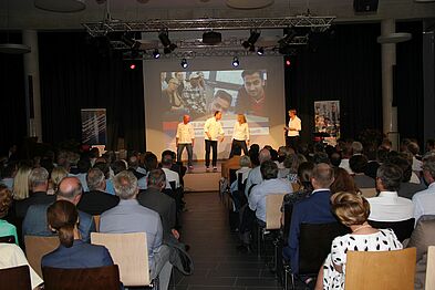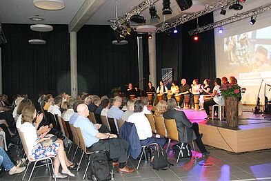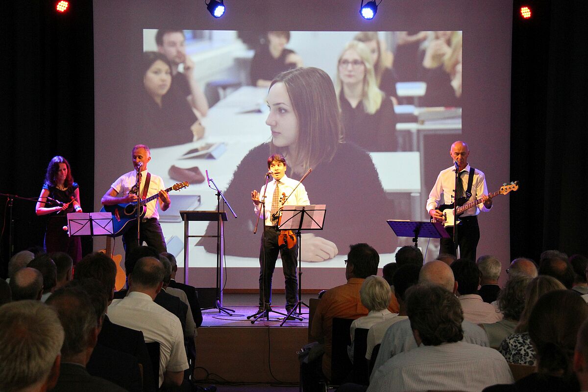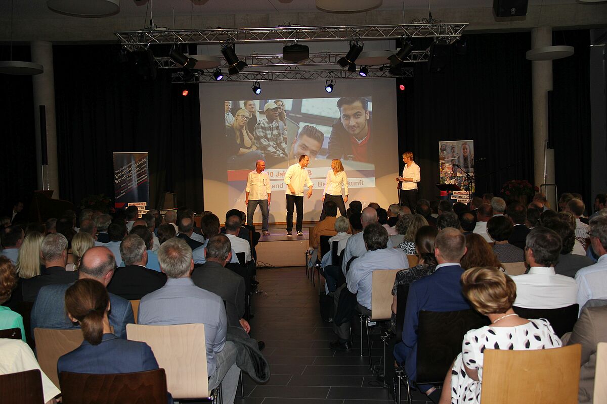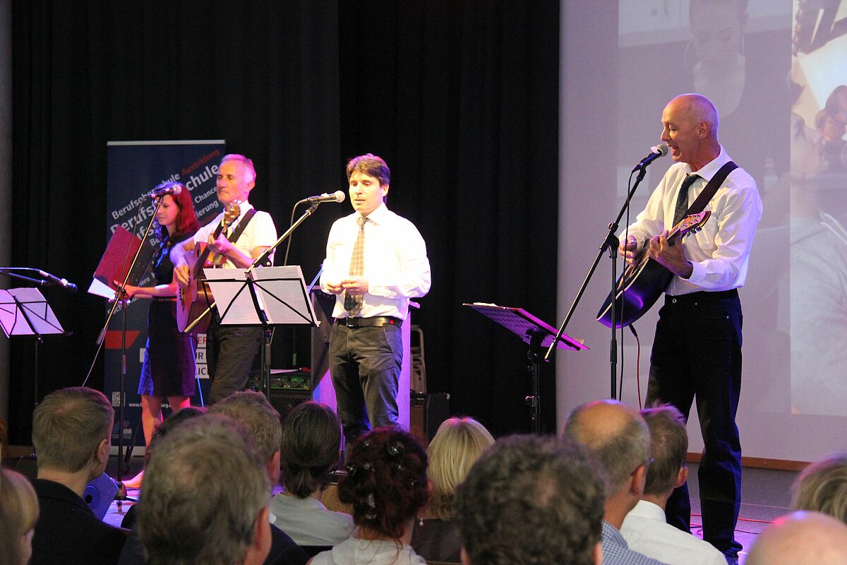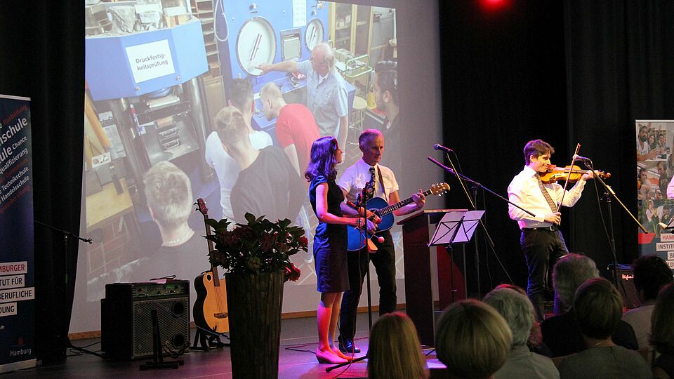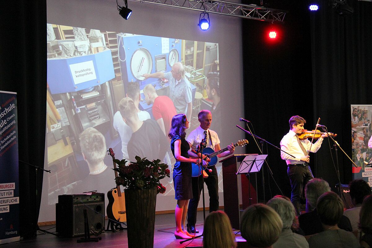 Hannes Frisch, Alexander Mottok und Kersten Reimann haben als Band „frank und frei“ zwei weitere Songs gespielt, Karin Hechler ist mit dem Wahlpflichtkurs Musik aufgetreten, Die Klasse SP 15-1 hat das Mensa-Team beim Catering unterstützt und Simone Jasper hat gemeinsam mit Reinhard Damm (stellv. Geschäftsführer HIBB) die Gäste begrüßt.