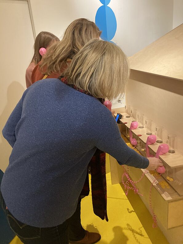 Am Montag, den 29.01.24, lud das Team von 'Kids im Dialog' die Kolleginnen und Kollegen der BS30 zu einem kostenlosen Schnuppernachmittag ein. Dabei hatten wir die Möglichkeit, alle Exponate selbst auszuprobieren und erhielten Einblicke in die museumspädagogische Begleitung. Zusätzlich wurden wir ausführlich über das Konzept, die Ausrichtung und Zielsetzung der Ausstellung informiert.